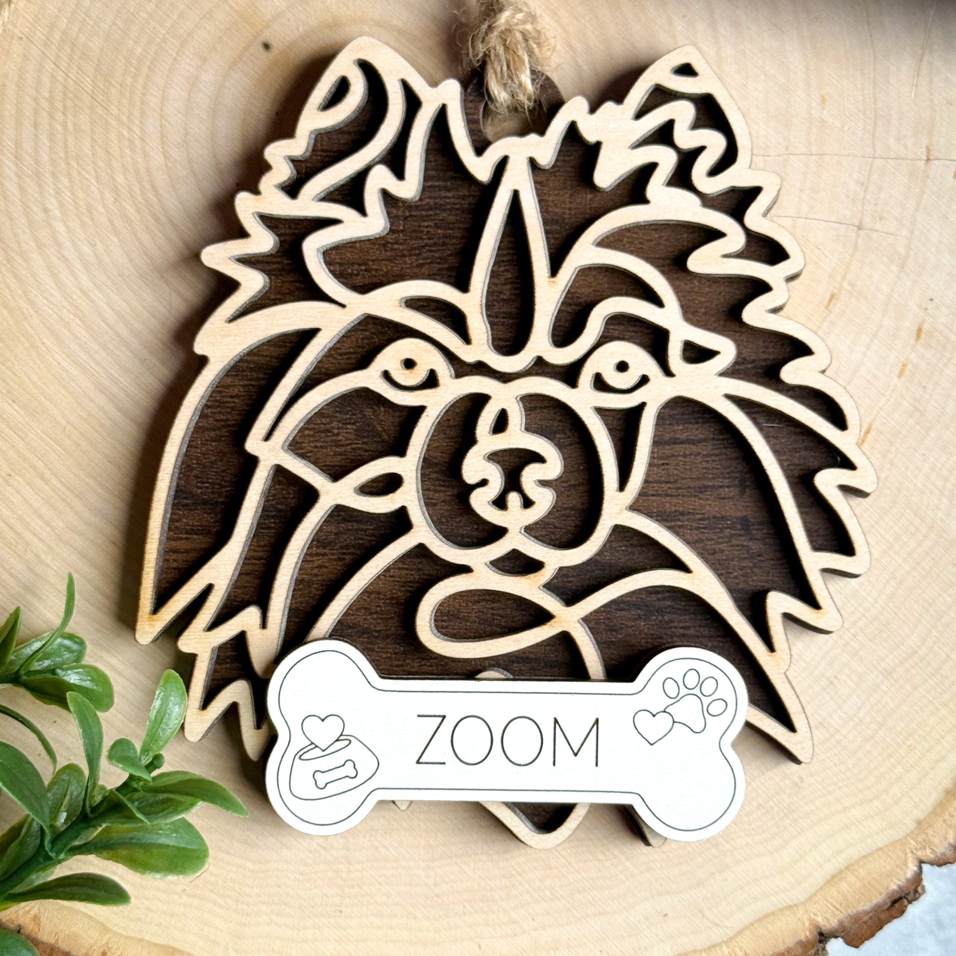 Celebrate your Keeshound with this handcrafted line art dog ornament, designed in elegant laser-cut wood. Measuring approximately 4 x 4 inches, each ornament captures the character of your favorite breed in a modern, minimalist style.