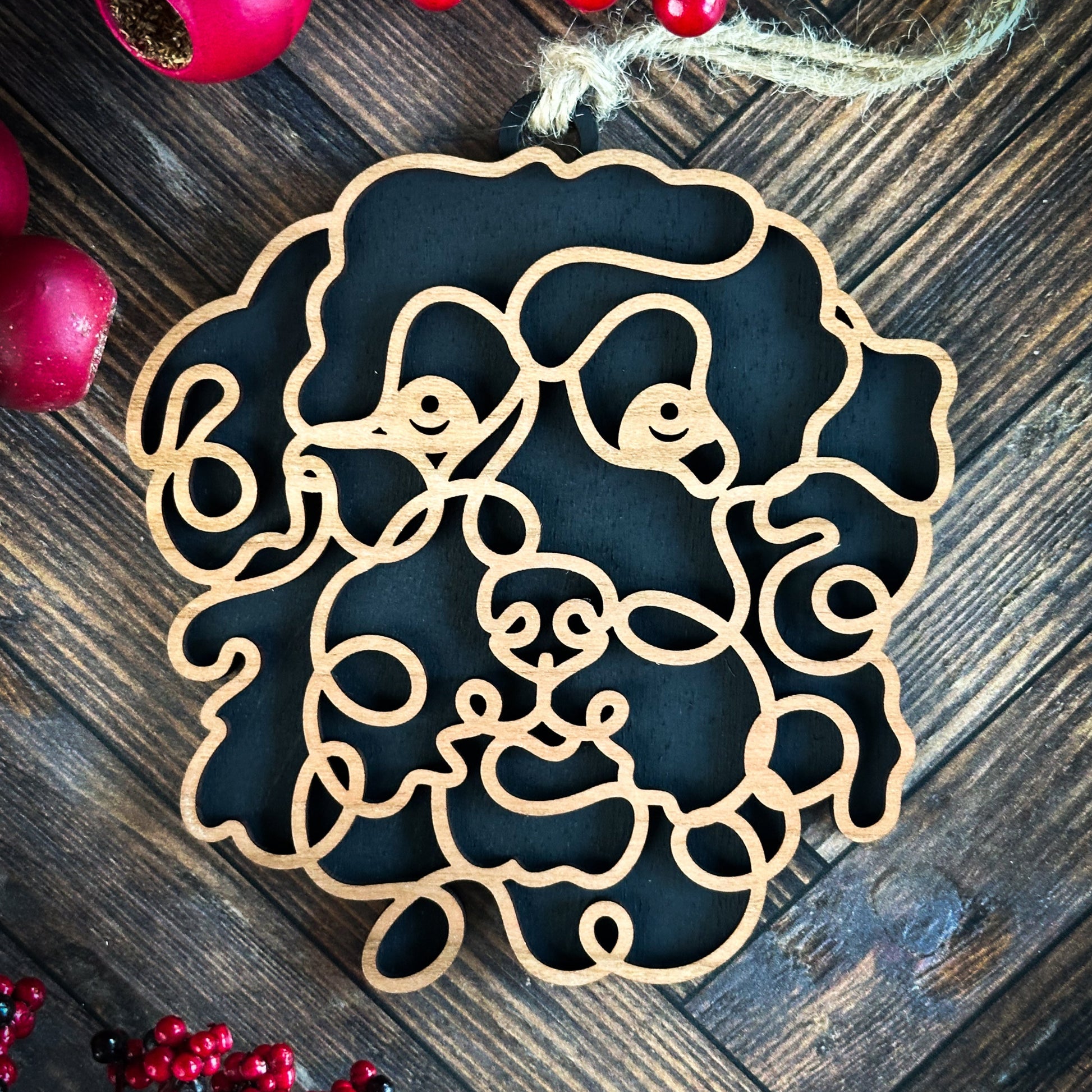 Celebrate your Old English Sheepdog with this handcrafted line art dog ornament, designed in elegant laser-cut wood. Measuring approximately 4 x 4 inches, each ornament captures the character of your favorite breed in a modern, minimalist style.